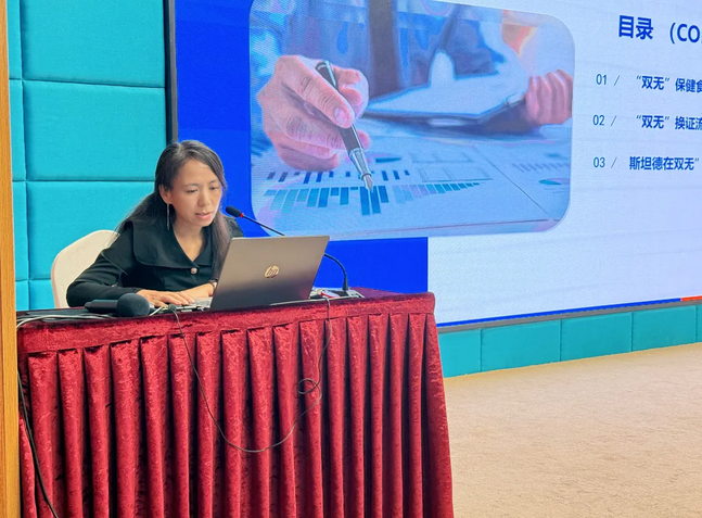 斯坦德安评事业部毒理技术专家解倩倩作《变更换证保健食品补充试验要求及注意事项》专题演讲。