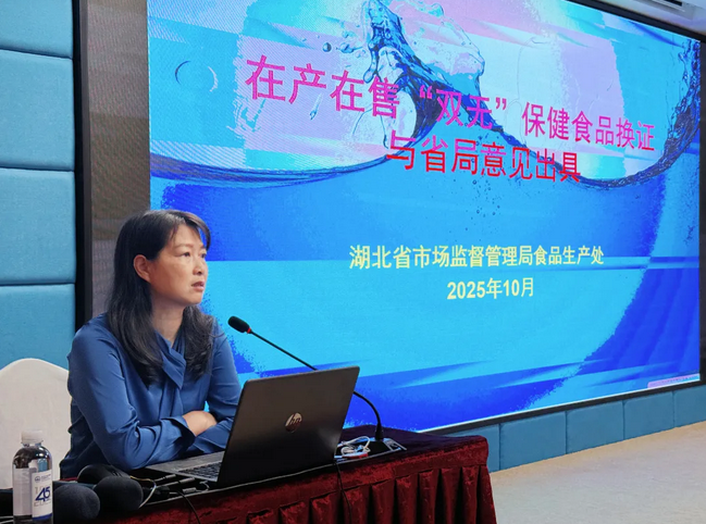湖北省局食品生产处二级调研员吴红霞作《保健食品监管及变更换证换证意见资料要求》专题演讲。